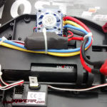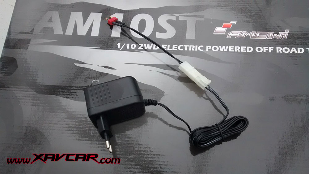 Une NiMH de 2000mha en 7,2V qui vient se loger sous une trappe très pratique à manœuvrer et à clipser sous le châssis. Une fois connectée, il ne reste plus qu’a basculer l’interrupteur ON/OFF placé derrière le moteur. (Pas pratique d’accès une fois le carrosserie montée). Contrairement aux habitudes, il faut d’abord armer la voiture avant la RC.