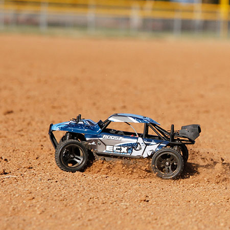 La voiture RC 4WD Roost Desert Buggy de chez ECX existe en plusieurs tailles (en orange ou en bleu), celle que j’ai choisis et la version 1/24.